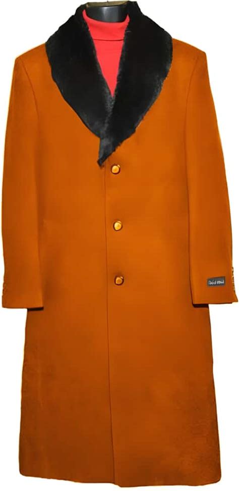 Rust 3 Button Wool Ankle Length Overcoat Long Men's Dress Topcoat - Winter Coat 95% Wool Fabric Rust / Coat Size 42