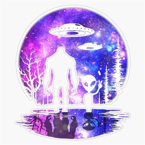 Alien And Bigfoot Full Moon Sasquatch Ufo Vinyl Window Bumper Sticker Decal 5"