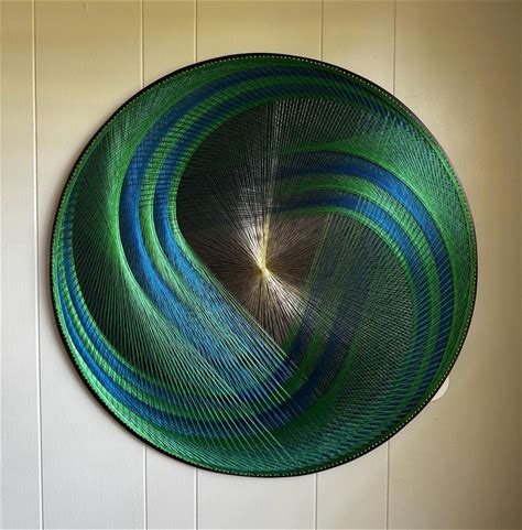 Large Round String Art: Blue Green Spiral Mandala, Sacred Geometry