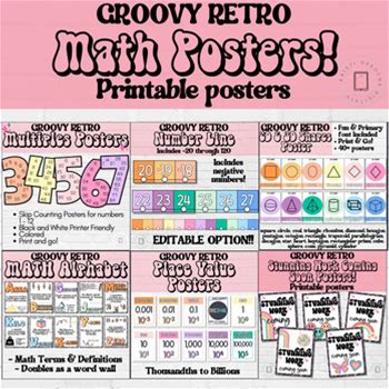 Math Classroom Posters, Math Posters For Classroom, Groovy Retro Classroom Decor, Classroom Decor Bundle, Number Posters, Posters, RTRMX